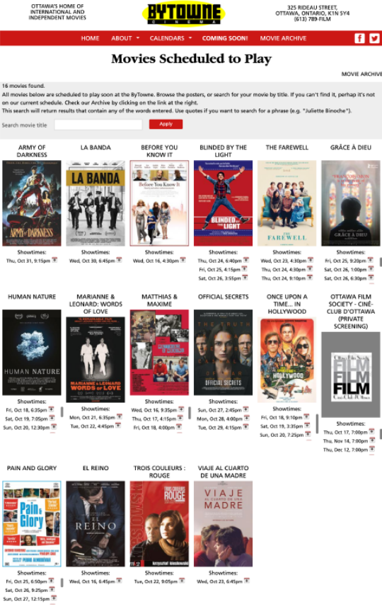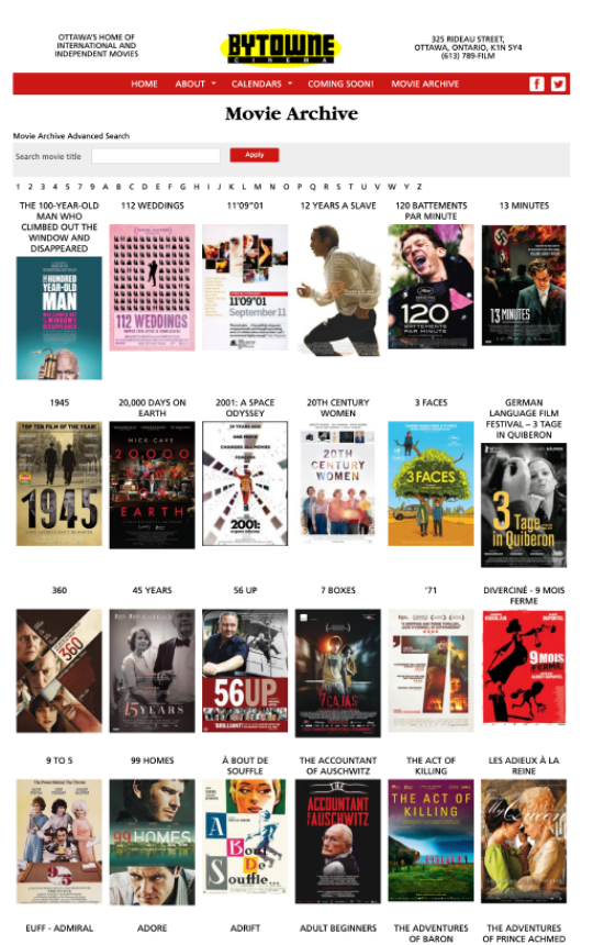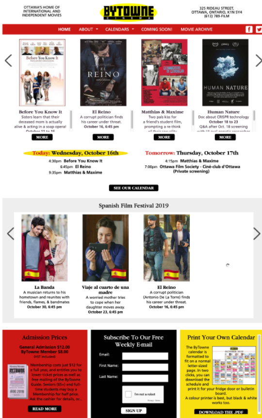 Bruce and his team at Bytowne now have a website they can manage, that is functional, modern and offers all the tools they wanted for their cinema portal (back-end website) and front-end website.